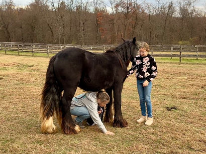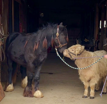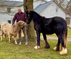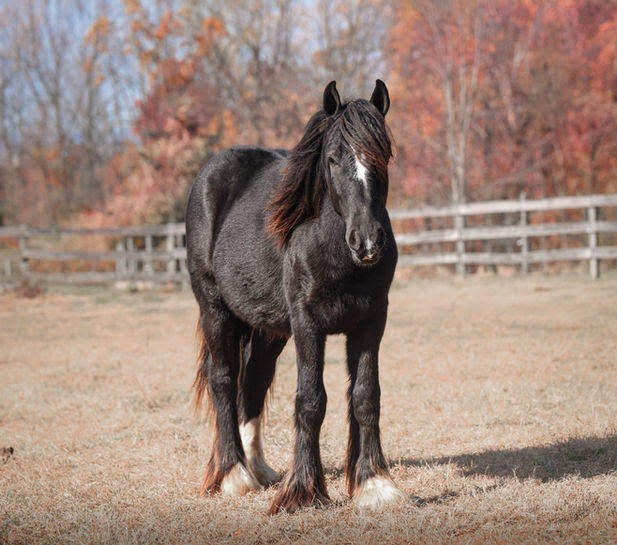“Leafy Lane Slim Shady” aka “Shady”, is a registered Gypsy Vanner colt, foaled on April 16th 2024, currently standing 13hh, who already owns a lush mane, tail, and feathers. If you are looking for a phenomenal brain, wonderful conformation, great breeding, and the looks to pair, here is your guy. Not only is Shady as friendly as they come, he has a very calm demeanor and an old soul. This boy was quite literally “born broke”. I really cannot say enough of good things about Shady, he is going to make the perfect partner for someone who is looking for a loyal and gentle friend. In the barn, Shady has zero bad habits. He can live in or out, goes out with others happily and has zero bad stall habits. He is quiet in his stall, neat, and never complains or asks for anything. He can live out 24/7, he does not mind either way. Shady will always be the first one to greet you, he will follow you around like a puppy dog and loves attention. He cross ties and straight ties. Shady will stand on the cross ties all day long to be groomed, braided, loved on, you name it. He stands to be bathed as well. Shady is safe for absolutely anyone to work around. He is very gentle and safe for kids and beginners to work with. He doesn’t mind my rowdy dogs running all around his feet. He picks up his feet and is good for the farrier and vet. A crazy busy barn is not frightening to Shady, it is amusing and he will just sit there and chill and watch all of the commotion. Shady has excellent ground manners. He can be fully handled, led, caught, etc by beginners and children. He has had extensive ground work, and he was raised correctly. Shady has gone on hand walks through the woods, through trail obstacles, through water and fields, he is going to be an amazing trail partner in the future. The brain that this young man has, is just not comparable. Shady lunges, and listens to voice commands. He has been tacked several times and never once had a reaction. We have started him on ground driving as well; and again he caught right on and did what was asked. I don’t know if I have ever been around such a teachable yearling!! Shady has been through lots of desensitizing. He takes everything in stride and is pretty much unfazed by all of our crazy antics. He will walk over a tarp, even with it blowing right at him and getting caught on his legs. He doesn’t mind if the tarp is flapping 15’ in the air. He will play with a big ball, and doesn’t mind it being on or around him. We have waved a large flag all around him, he didn’t mind. He follows the wagon with a little “pony” in it, and was much more interested in eating the hay inside of the wagon lol. Atvs and other machinery? Traffic? No problem, he chases the Ranger in the pasture to catch us for hay. Lead him from the four wheeler. Dogs running all over? He doesn’t care. Cows? Cows are friends. Shady has also been introduced to trail obstacles such as walking through pool noodles, over ground poles, over flower boxes and even jumped a few cross rails in hand. He loads and trailers well, with or without company. Shady is going to be easiest guy to start, the hard part is done, here is a horse that is ready to start your way, and be your forever partner. Shady is sired by a stallion named “Monashee Toy Story”, a strapping sire who is beautiful marked. Also known as “Buzz” is considered a mini-Gypsy. He attended the 2023 Gypsy Vanner Congress and is known for his good demeanor and athleticism. Shady’s dam is named “Wellington Kenai”, who is a spitting image of Shady, with great conformation, big bone, and wonderful hair. She is a regular sized Gypsy. Shady is expected to finish at around 14.1-14.2hh. On his Sire’s side, the name “North Star Maestro” will be found, who is a significant representative of the GVH breed, possessing some of the best GV bloodlines. Shady’s top side also goes back to the famous “Bob The Blagdon”. On Shady’s bottom side, he goes back to “Romany King” and influential stallion known for his conformation, amazing temperament, and wonderful movement. Romany King earned a five star evaluation by the GVHS. Slim Shady has excellent breeding, in which has created an amazing all around yearling. Whether you are looking for an all around gelding or a herd sire, these bloodlines speak for themselves.